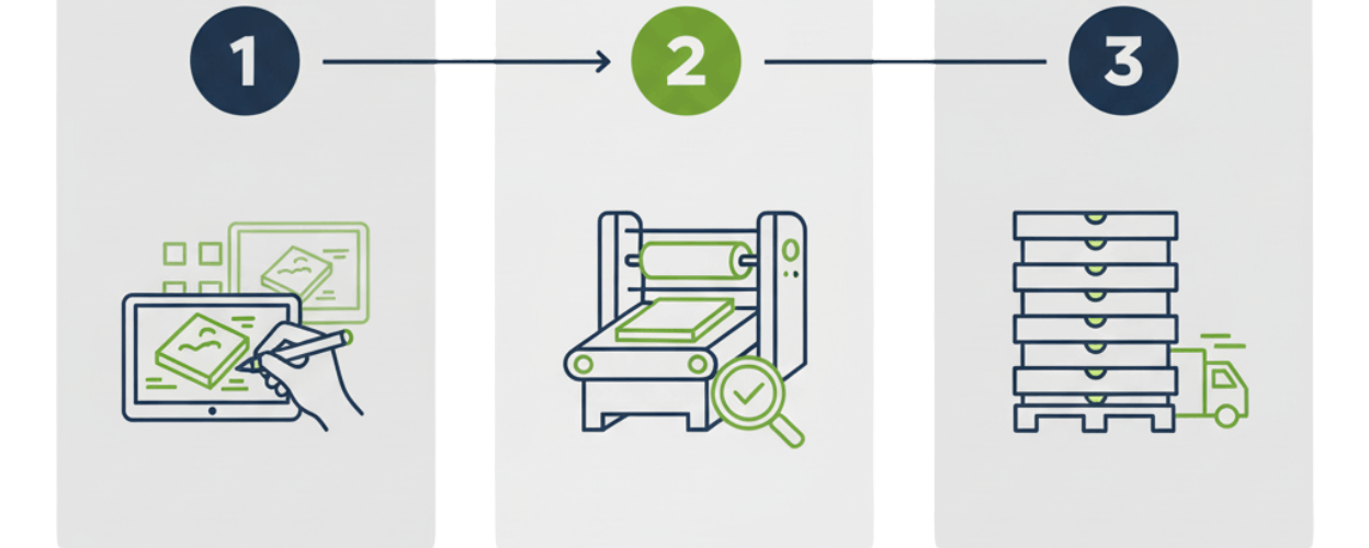 In nur drei Schritten zu Ihrer perfekten Lieferverpackung: null Risiko, da der Druck erst nach Ihrer Freigabe startet.
